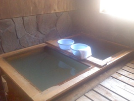 肌に良い弱アルカリ性の温泉で、1階にはオーナーの手作りのヒノキ風呂、2階にはユニットバスがあります。